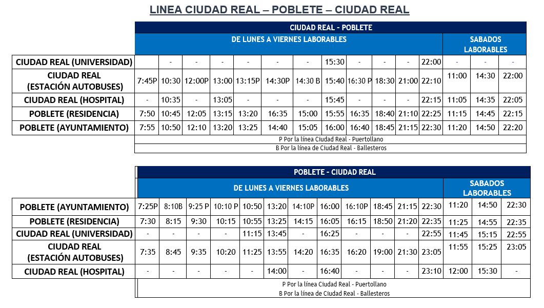 Con motivo de la modificación de los horarios de la línea Ciudad Real – Poblete, a partir del próximo 8 de abril de 2026, los nuevos horarios serán los siguientes: